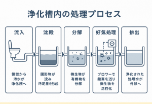 浄化槽内では、複数の段階を経て汚水が浄化されます。